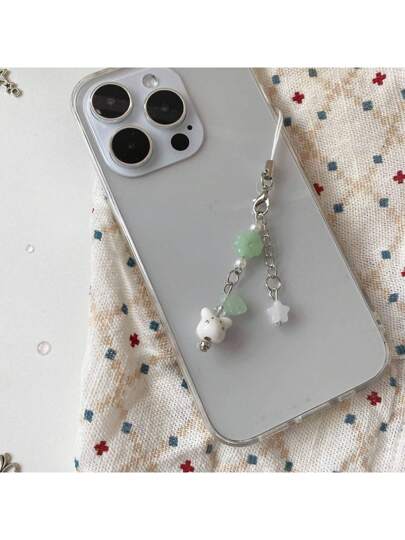 新款韩系偶像风幸运简约优雅可爱兔子手机挂绳,四叶草动物陶瓷兔子钥匙扣,手工串珠手机挂绳
