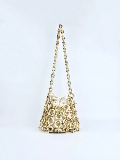 新款鎖扣手工晚宴派對時尚女士手袋,可肩背或手持 - 杏色 - 查看 10