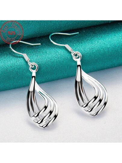 New S925 Sterling Silver Minimalist Geometric Triple Hoop Earrings - Hypoallergenic - Fashion Minimalist Style Jewelry - Women's  Gift Party Gift Birthday Gift - 銀色 - 查看 7
