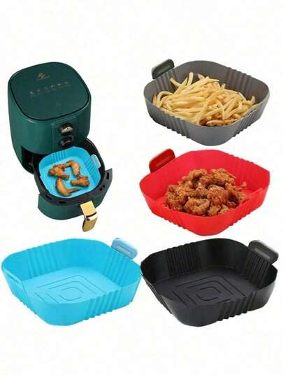 新款硅胶空气炸锅烤盘,易于清洁且可重复使用,非常适合制作披萨和炸鸡,双把手设计。 - 查看 6
