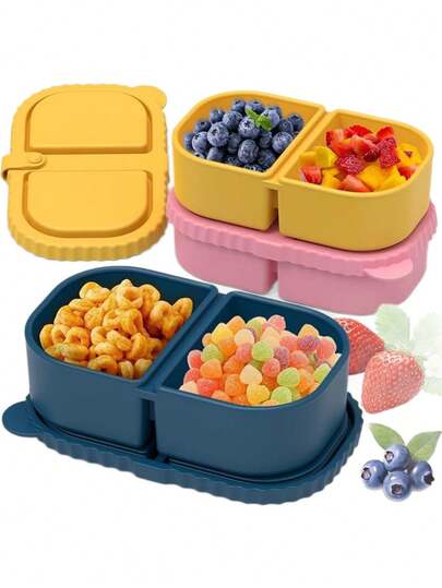 新款硅胶双层酱料盒带盖,可折叠硅胶防漏沙拉盒 - 彩色 - 查看 1