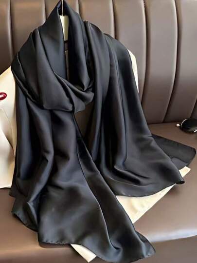 新款真丝缎纯黑色披肩围巾 1 件