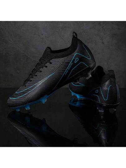 新款足球鞋推荐,适合学校、学生、比赛、训练,长鞋钉,耐用,防滑,抓地力强,男女成人通用 - 黑色 - 查看 1