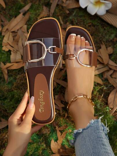 新款时尚女士平底凉鞋 - 棕色 - 查看 1