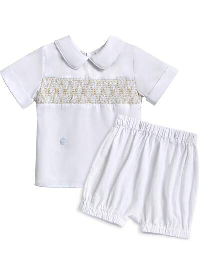 New Summer Two-Piece Suit For Boys And Girls, Casual Breathable Tops And Elastic Shorts, Suitable For Children Aged 0-5 Years Old, Suitable For  And Home In Summer - 白色 - 查看 1