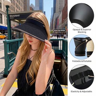 新款女士骑行防晒帽,防紫外线,可折叠,加宽帽檐,遮挡面部,无帽顶防晒帽,草编帽,大帽檐,夏季防紫外线,遮挡面部,无帽顶,防紫外线,户外便携式防晒帽 - 彩色 - 查看 1