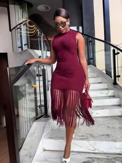 New Tassel Knit Dress For African Women, Slim-Fit Stretch Mid-Length Beach Cover-Up