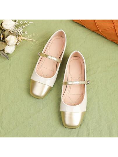 全新 女式 玛丽珍平底鞋 奶奶鞋 乐福鞋 - 糯米白色 - 查看 1