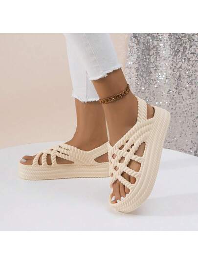 新款女式平底輕便家居拖鞋和涼鞋 - 米色 - 查看 1