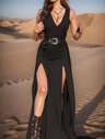 女士纯色圆领休闲优雅日常腰带蝴蝶结长裙,灯笼袖,适合春季、夏季、秋季、海滩、蜜月、端庄