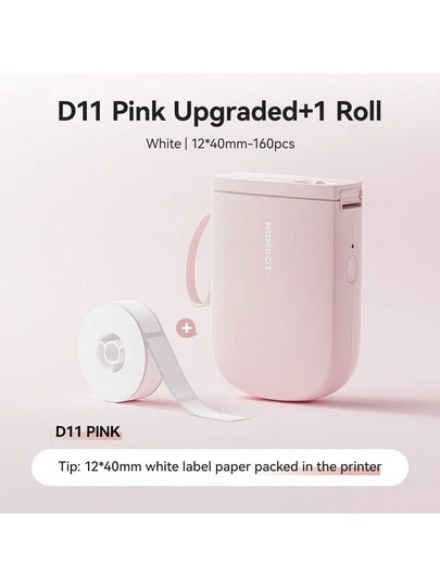 NIIMBOT D11 升级版高清标签机带胶带,300DPI 蓝牙标签打印机,便携式热敏打印机,适用于家庭办公室学校的贴纸机 - 粉色 - 查看 1