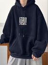 Manfinity Homme 男士字母和抽象印花休闲保暖连帽衫,适合秋冬季节,长袖上衣