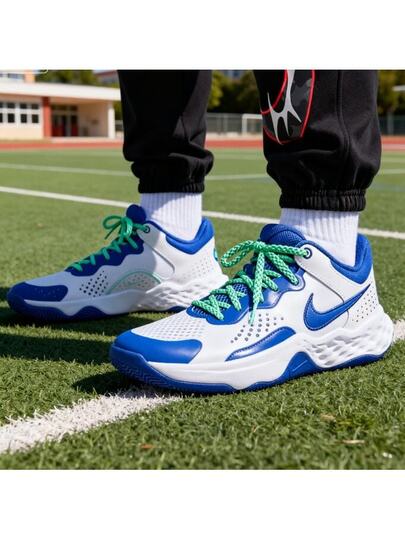 Nike Fly.By Mid 专业防扭中帮男子篮球鞋,全新轻质缓震抓地训练篮球鞋,亮蓝白配色,休闲运动鞋,球场最爱 DD9311-102 - 藍白色 - 查看 1