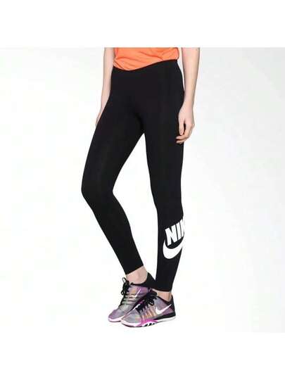 Nike Sportswear Logo印花圖案高腰瑜珈 健身運動褲LY 女款CZ8529-010 - 黑色 - 查看 1