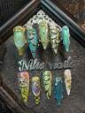 10片装韩版金色3D立体装饰镀铬Y2K全覆盖假指甲套装,表达你的爱意;浅紫色和蓝色扎染欧式朋克可爱波西米亚公主风装饰音乐节北欧全覆盖贴片美甲套装;3D立体美甲水钻钢珠配件;彩色闪亮美甲宝石