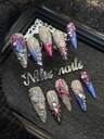 10片装韩版金色3D立体装饰镀铬Y2K全覆盖假指甲套装,表达你的爱意;浅紫色和蓝色扎染欧式朋克可爱波西米亚公主风装饰音乐节北欧全覆盖贴片美甲套装;3D立体美甲水钻钢珠配件;彩色闪亮美甲宝石