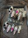 10片手工亚克力美甲贴纸,圣诞尖头美甲,红色、裸色、绿色雪花图案(圣诞主题),白色和红色手绘雪花蝴蝶结,3D立体效果,镶嵌水钻、珍珠、蝴蝶结和其他美甲配件。这款亚克力美甲套装适合圣诞节、新年、日常、聚会、派对等场合,是送给女性和女孩的绝佳礼物。套装包含1片果冻棉片和1个指甲锉。