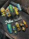 10片杏仁形美甲贴片套装,浅紫色猫眼和杏色扎染风格美甲贴片,3D立体钢珠和珍珠美甲配件装饰,手绘金属几何图案和星星美甲设计,Y2K风格图案美甲贴片套装,适合女性日常佩戴和派对美甲(包含:一片果冻胶和一条摩擦条)美甲用品