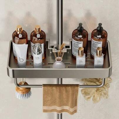 免钻孔淋浴置物架 - 小巧实用,坚固稳定,可作淋浴杆、浴缸托盘、浴室悬挂式置物篮,用于放置肥皂和洗发水瓶,浴室收纳整理架 - 深灰色 - 查看 1