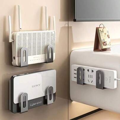 免钻孔壁挂式收纳架,适用于路由器、WiFi调制解调器、机顶盒、线缆管理,人造宝石架,节省空间的多功能收纳架,带粘胶