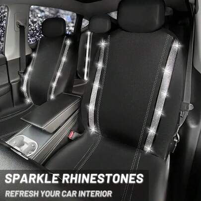 防滑水钻汽车座椅套套装,闪亮水钻防水仿皮材质,背面带拉链,通用汽车闪亮水晶条,适合可爱女孩,银色