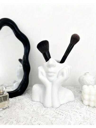 北欧ins风抽象面部化妆刷收纳盒,创意人体艺术托腮造型笔筒,桌面梳妆台化妆品收纳盒,家居装饰