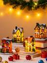 4件套圣诞迷你村庄树脂摆件,圣诞装饰品,迷人的雪景微型房屋,仙境花园微景观装饰,DIY圣诞节、万圣节装饰、秋季家居装饰收藏摆件