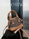 新款秋冬迷你字母皮革吊牌吊饰复古拼接豹纹手包、化妆包、迷你方包、小众时尚水桶包、箱包、百搭休闲单肩斜挎包,新款秋冬虎纹女包