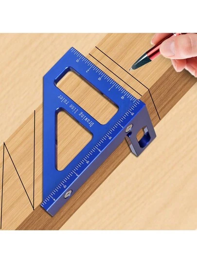 一件藍色英寸木匠方尺,木工方尺,鋁制斜板三角形尺,3d多角度45 / 90度佈局測量尺 - 藍色 - 查看 10