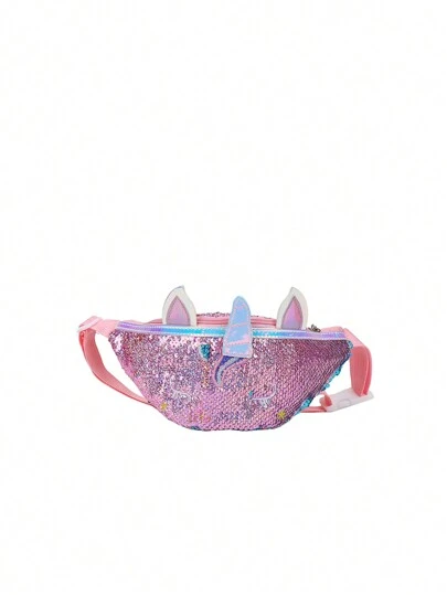 1個女孩可愛時尚的獨角獸形肩袋,帶拉鍊閉合和閃閃發亮的亮片,適合秋冬日常使用 - 粉色 - 查看 1