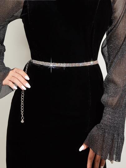 一女性三行數的鑽石水鑽装饰灯奢華腰鏈 - 彩色 - 查看 5