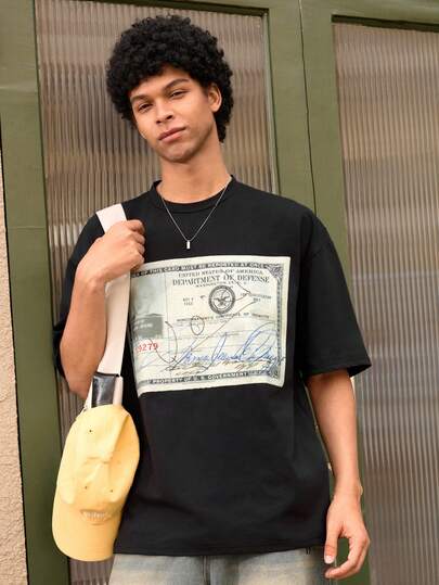 Open Phase 男士新款嘻哈时尚美元印花T恤 - 黑色 - 查看 1