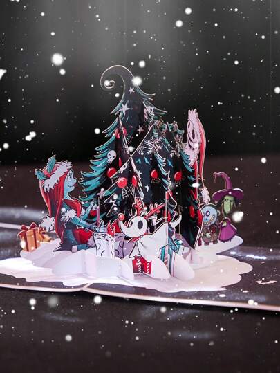 Opjoys 1 张圣诞前夜弹出式卡片、杰克和莎莉圣诞树贺卡、感谢卡、手工弹出式卡片、圣诞礼物、圣诞节 - 彩色 - 查看 1