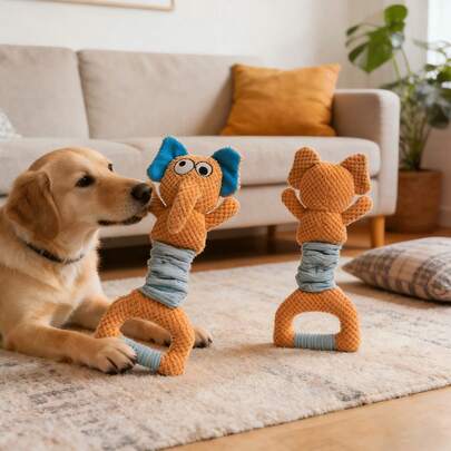 橙色毛绒大象吱吱叫玩偶,互动宠物玩偶,适合猫狗,能给小型犬猫带来娱乐