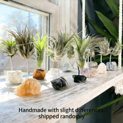 原石+仿真空气凤梨+支架套装 | 独立房间装饰,仿真植物摆件桌,嬉皮水晶植物架,空气凤梨礼盒,波西米亚风装饰 - 多色 - 查看 9