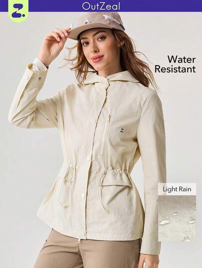 OutZeal 女式防水抽绳腰部翻盖口袋户外夹克徒步露营秋季 - 白色 - 查看 1