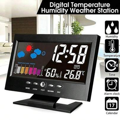 椭圆形数字闹钟,带日历、天气、温度、湿度监测、闹铃功能,塑料材质,睡眠定时器,桌面装饰,圣诞节和新年礼物,需要2节AAA电池(不包含在内)。