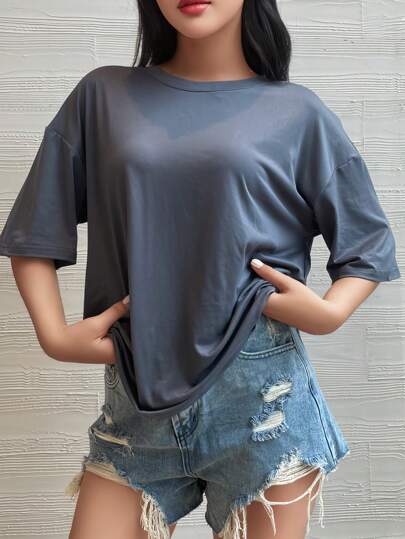 6. 超大款短袖T恤,纯黑色,休闲宽松版型,适合夏季运动