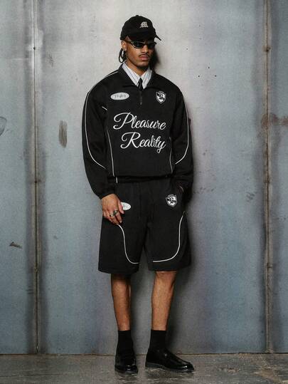 PAVTROS 男士休闲字母印花拉链连帽衫和短裤套装 - 黑色 - 查看 8