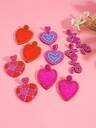 2件套时尚精致粉色圣诞合金耳环,粉色手套,汽车,圣诞树金色耳环,适合女士日常休闲圣诞派对佩戴作为礼物(手工制作,钻石略有差异)。