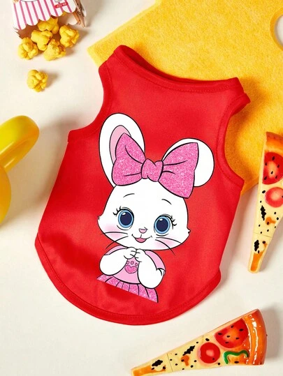 PETSIN 一件红色透气亲肤宠物背心,饰有蝴蝶结和淡粉色兔子图案 - 紅色 - 查看 1