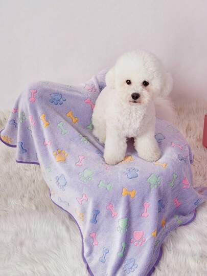 PETSIN 1 件可爱爪子和骨头印花宠物毯,适合猫狗,温暖 - 紫色 - 查看 1