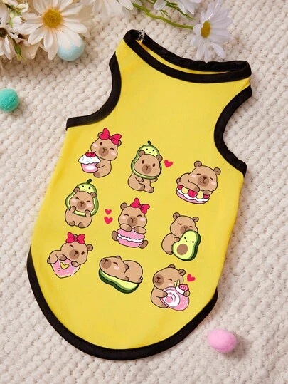 PETSIN 1件可爱河豚爱心蝴蝶结牛油果帽印花宠物背心黄色拼接黑色柔软透气防掉毛宠物衣服