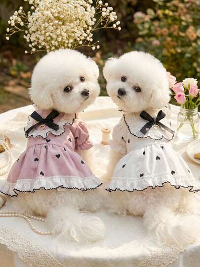 PETSIN 1件宠物服装,心形印花宠物公主风连衣裙,猫狗通用服装 - 彩色 - 查看 1