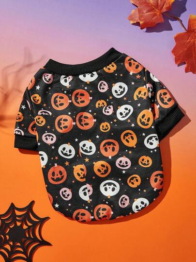 PETSIN 1件宠物万圣节南瓜印花休闲卫衣