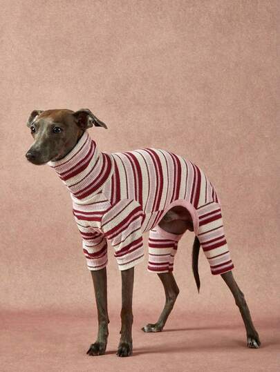 PETSIN Pawparrel 1件宠物秋冬时尚经典复古条纹印花学院风双面绒保暖弹力舒适狗狗高领连体衣 - 彩色 - 查看 1