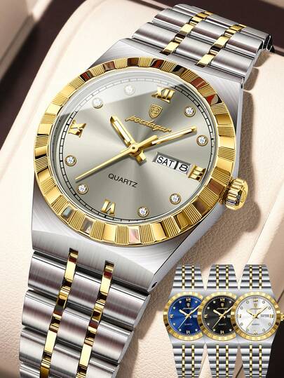 POEDAGAR 1件装女士不锈钢优雅奢华防水夜光日期星期显示石英腕表,女士休闲日常腕表及礼品 - 均碼 - 查看 1