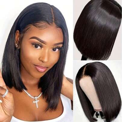 PQL 13x4 高清蕾丝前直发假发,真人发混纺,女士预拔毛 Remy 无胶假发,真人发混纺,巴西高清透明蕾丝前假发,180% 密度,长款真人发蕾丝假发,自然黑色 - 自然色&黑色系 - 查看 10