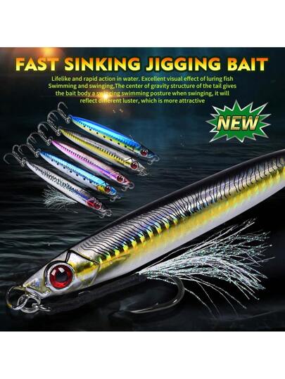 PRO BEROS Proberos 5 件优质金属 14 克-100 克跳汰钓鱼诱饵 - 多种尺寸,适合鲈鱼、鲑鱼等 - 非常适合远距离抛投和跳汰 - 彩色 - 查看 14