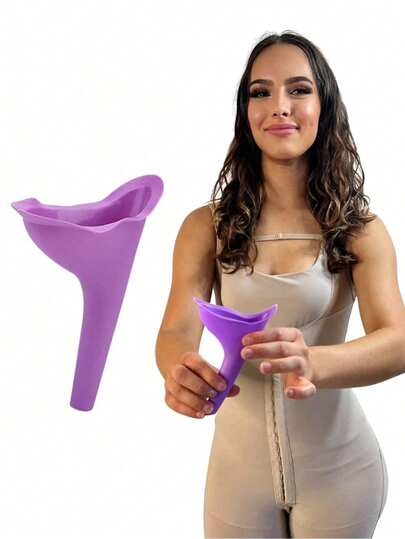 1个便携式紫色/粉色/橙色女性小便器,采用TPR橡胶材质,适合户外旅行和女性健康护理